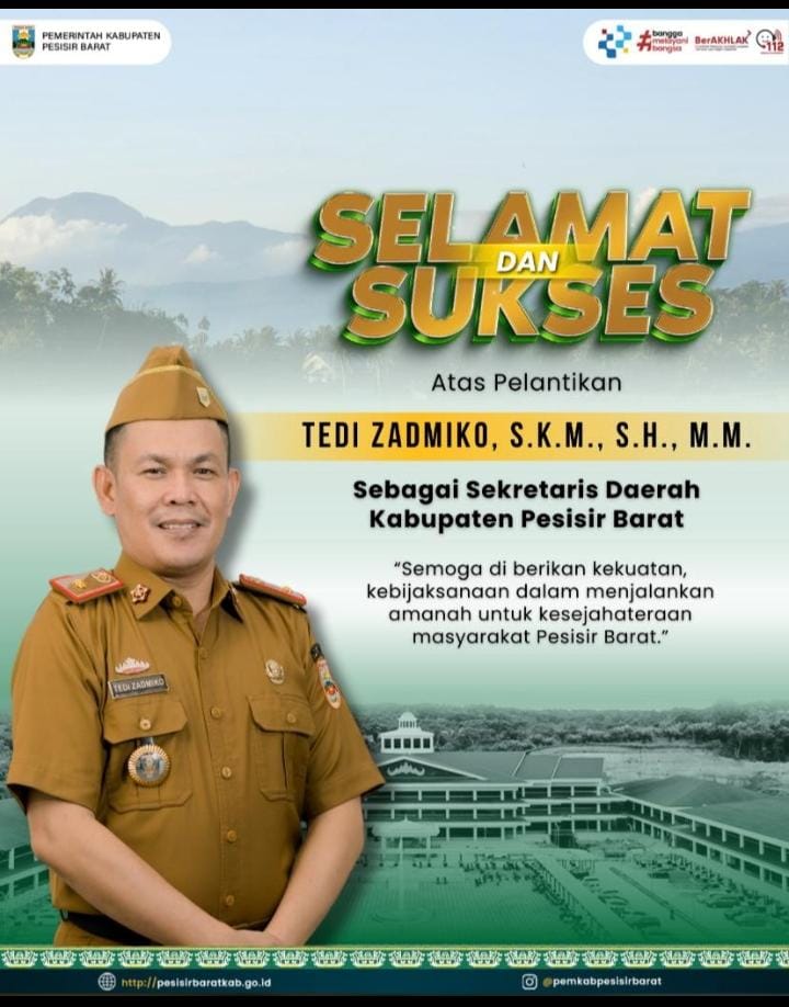 Semoga Allah SWT senantiasa memberikan bimbingan, petunjuk, serta keberkahan dalam setiap langkah dan keputusan Bapak dalam mengemban tugas, demi kemajuan Kabupaten Pesisir Barat yang kita cintai bersama.